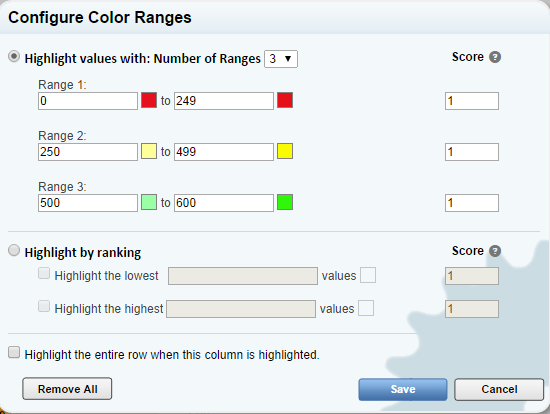We improved highlighted columns to include more color ranges. This will help all users bring direct attention to specific data elements. There is also a weighted "score" you can place on each numeric range to be applied to the highlighted column count.