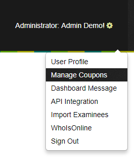 Step 1: Choose Manage Coupons from the Administrator dropdown.